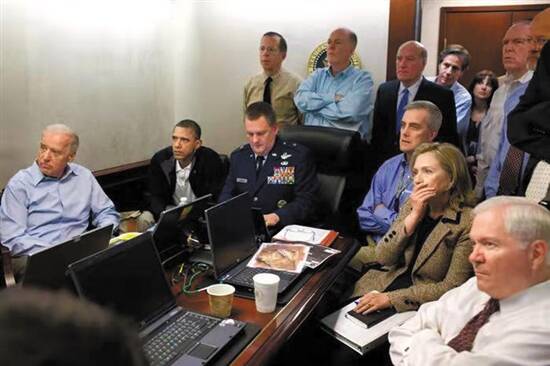 美国多家媒体也认为,相比之下,奥巴马在战情室看猎杀拉丹的那张照片中,有副总统、国防部长、国务卿等一共13人,大家坐姿、表情各异,但眼睛都一致盯着直播行动的屏幕,希拉里·克林顿还捂着嘴巴,紧张气氛一目了然。