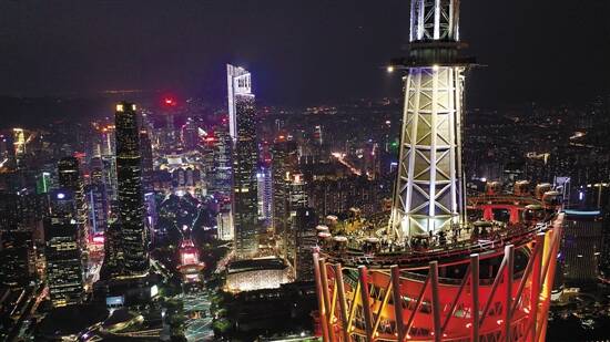 从广州塔顶端可见广州中心城区繁华夜景 羊城晚报记者 林桂炎 梁喻 摄