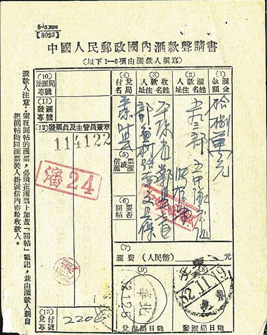 这张珍贵的汇款单就是在这一期间汇出的。