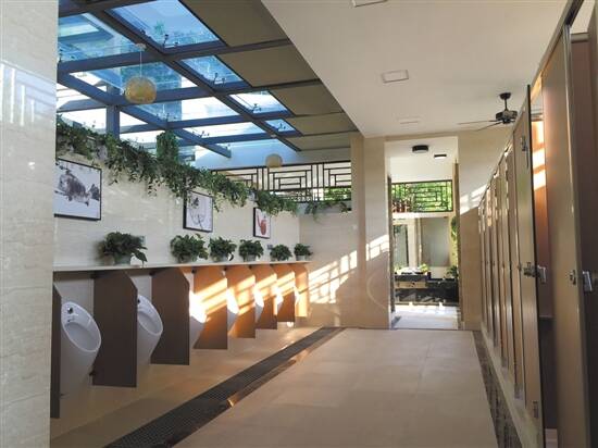 升级改造还重点调整男女厕位比例,约达2:1,大幅增加女厕位数量至19个,设计双向通行通道,使得如厕人员随来、随上、随走,空间开阔不拥挤。