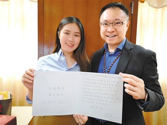 面对恐吓也十分乐观,“唐僧阿sir”的妻子将网友表达支持的礼物和卡片转送给香港警察