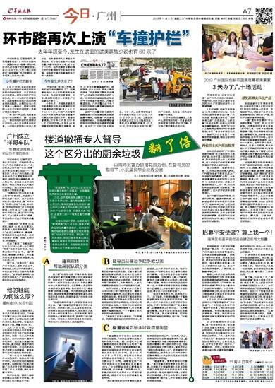 今年6月,羊城晚报曾就环市路屡屡发生机动车碰撞护栏的交通事故进行报道(详见6月17日A5版报道),引起广州交警的关注并对该地常发机动车碰撞护栏事故的原因进行分析。根据交警通报,2018年1月至2019年5月,广州环市路一共发生46宗碰撞固定物的轻微交通事故,其中33宗涉及碰撞隔离护栏。疲劳驾驶、开车打手机、驾驶人操作失误等“不良驾驶习惯或不当操作“,占该道路交通事故成因的七成,另有两成和道路设施在雨夜天气下可视度不佳有关。为减少事故发生,广州交警已在今年7月对环市路部分事故高发路段开展标线升级改造。