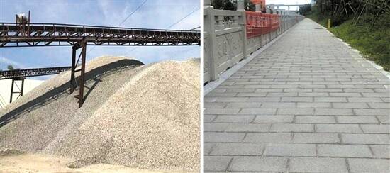 ▲废弃物转化为再生骨料生产海绵透水砖
