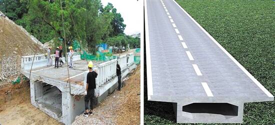 同时,还利用原梁块下方的箱涵空间,打造了一条长91m、宽3m、高1.7m的综合管廊,用于敷设电力、通信、供排水等市政管线。而据了解,这是全国首条桥梁拆除废弃物循环利用道路。