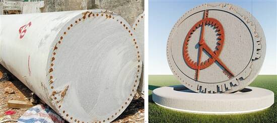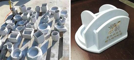 另外,综合利用企业利用自主研发的造型模具,将1个单箱完整梁块(建筑废弃物综合利用量约0.01万吨),生产加工成笔筒、花盆、花瓶等小型艺术摆件。所有景观设施和艺术摆件的显著部位,都被标注“黄木岗立交综合利用纪念”的印记。
