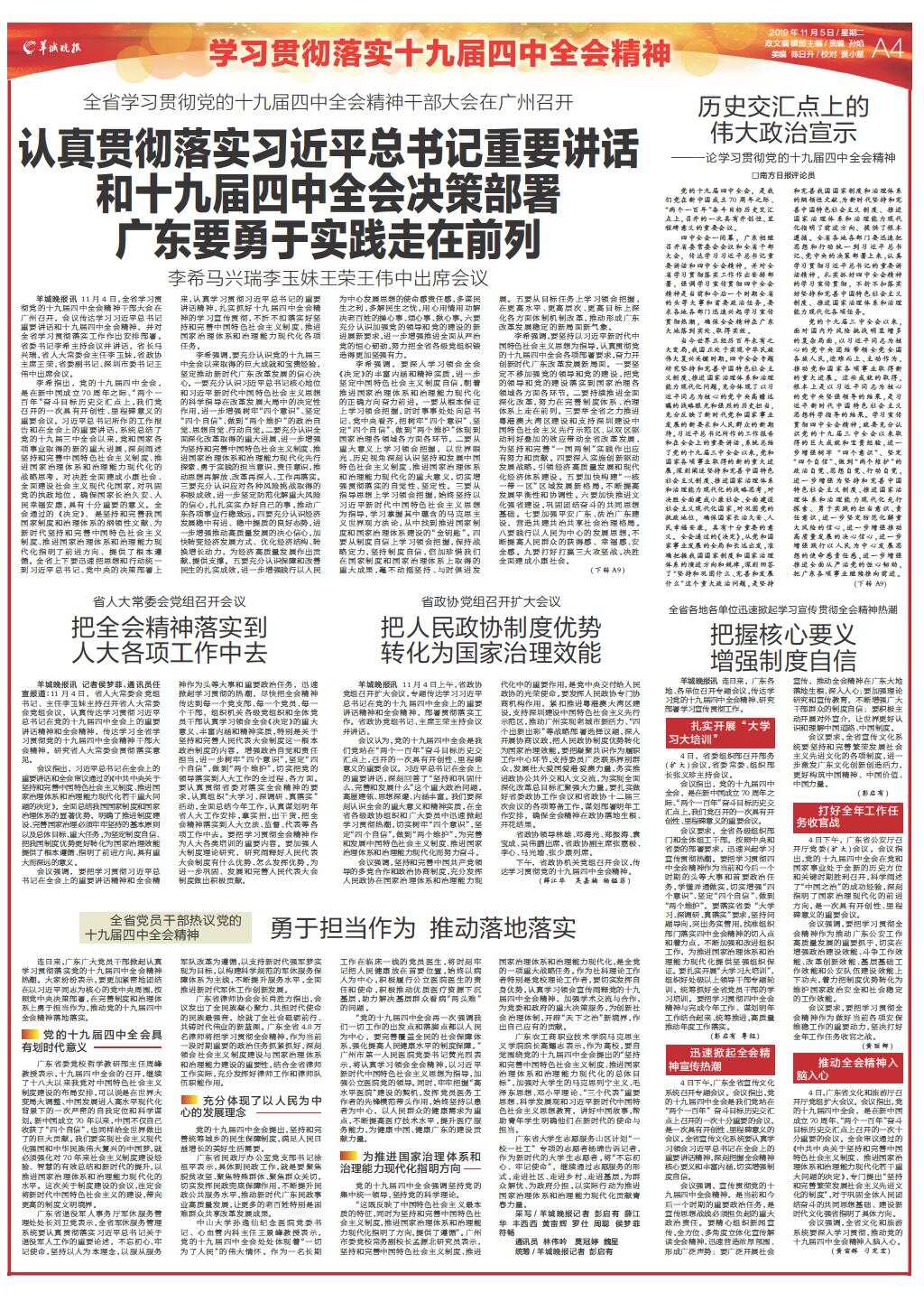 认真贯彻落实习近平总书记重要讲话 和十九届四中全会决策部署 广东要勇于实践走在前列