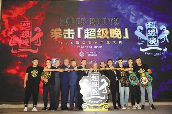 羊城晚报海口讯 记者周方平摄影报道:2020海口贺岁拳击“超级晚”赛事昨天在海口观澜湖召开新闻发布会。赛事主办方观澜湖集团在发布会上宣布,联手美国顶级拳击推广公司Top Rank及中国著名拳击推广公司盛力世家重金打造顶级职业拳击赛事品牌——贺岁拳击“超级晚”赛事,该赛事头条主赛将会是世界顶级拳王头衔战,主办方称将在未来三年内,将此赛事打造成世界顶级职业拳王争霸赛与其他顶级体育娱乐资源相结合的超级IP。