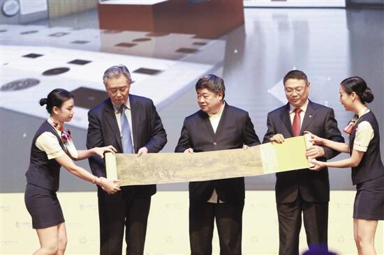 单霁翔(中)参加2019广州文交会启动仪式,“清明上河图3.0”数字艺术展内地巡展正式启动