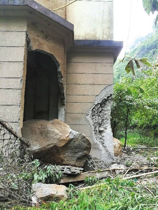 据了解,意外发生时,有3块巨型石块在强对流天气下从保利林语山庄小区后山滚落。其中最具破坏力的一块巨石达3米多高,自重70多吨。巨石滚落期间不仅破坏了林荟街6号楼的挡石墙和防护网,还把6号楼首层架空层承重墙撞垮。除这块最具破坏力的巨石外,另一块自重8吨多的巨石,亦对6号楼主体结构造成撞击破坏。所幸意外发生时6号楼架空层没有人员滞留,无人员伤亡。
