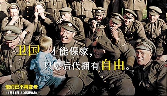烂番茄好评100%,豆瓣评分8.8,高口碑史诗级战争纪录片《他们已不再变老》将于11月11日登陆全国艺术院线联盟。这是《指环王》《霍比特人》系列导演彼得·杰克逊的又一部杰作,不过这一次,凭的不是对魔幻世界天马行空的想象力。在《他们已不再变老》中,彼得·杰克逊实现了一个现代电影技术史上的奇迹:他让那些来自一战战场的陈旧影像重新焕发光彩,让那些年轻的面孔上的微笑仿佛刚刚发生在昨天。