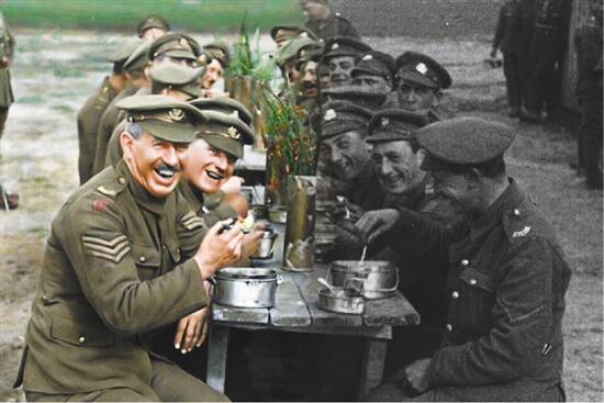 “上色”也是一项艰巨的挑战。每个士兵身上的徽章、袖口、小物件,它们的颜色都必须既符合史实,又看起来清晰自然。彼得·杰克逊尤其为英德两军制服的颜色头疼,那种如今已不多见的特有的卡其色,耗费了团队大量时间才“调制”成功。不仅如此,彼得·杰克逊还邀请世界唇语大师解读当年影像中士兵的对话,然后再进行配音,最终让一直存在于无声与黑白世界的人们“复活”。