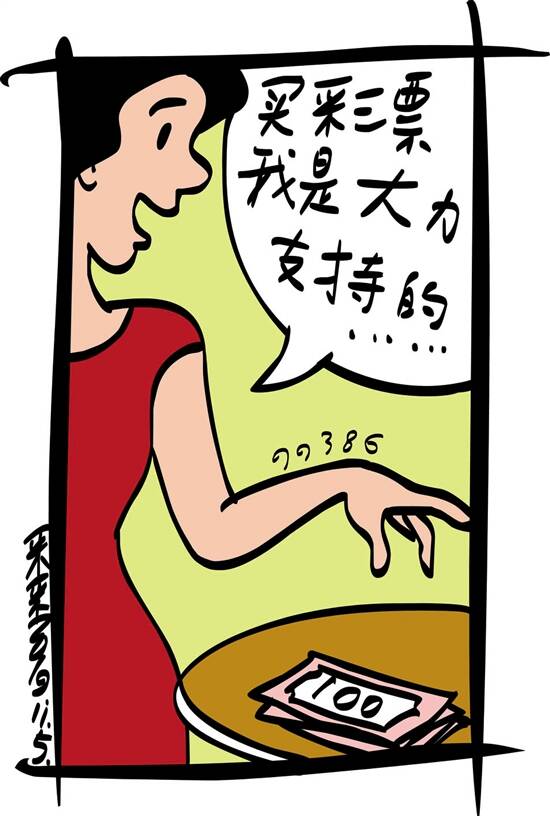 才过了几天老婆就追问道:“这么久了,货怎么还没有到!”我说:“我有点舍不得啊!关键是你最近财政紧缩,把我买彩票的钱都快紧缩掉了!”老婆生气道:“我只是限制你喝酒,买彩票我是大力支持的,最近更要多买,看看我们家的运气怎么样。”说着老婆从钱包里掏出1000元甩给我了。