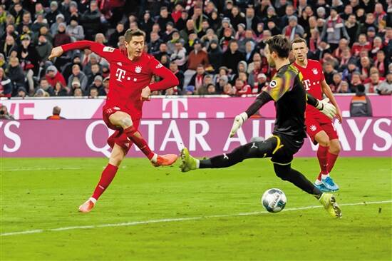拜仁在第17分钟取得领先,科曼右路传中被破坏,帕瓦尔又凌空传回禁区,莱万多夫斯基头球敲开老东家的大门。莱万创下连续11轮德甲进球的新纪录,同时成为第一位连续6场德甲国家德比进球的球员。