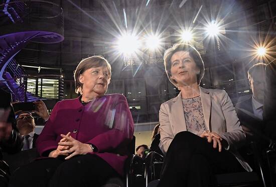默克尔(左)与冯德莱恩会晤 视觉中国供图