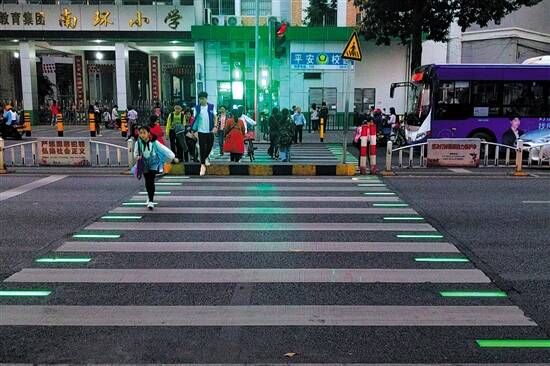 值得注意的是,这组智慧发光斑马线在夜间、阴雨天、沙尘暴等恶劣天气,可以更直观地传递信号灯的变化,提醒交通参与者遵守交通规则, 尤其是提醒“低头族”,以减少车辆、行人的过街冲突。