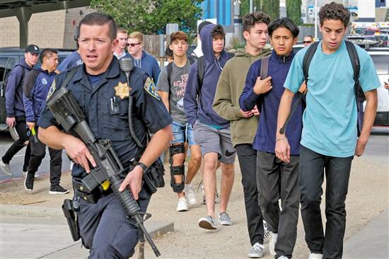 警方疏散枪击案事发学校的学生 图/视觉中国