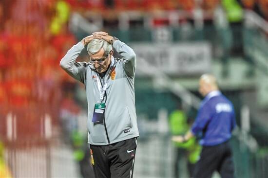 羊城晚报讯 记者郝浩宇报道:今晨,在中国男足客场以1比2输给叙利亚队后,里皮(右图,新华社发)宣布辞去主教练职务。在赛后新闻发布会上,里皮相当激动:“我不想点评这场比赛,一支球队到了场上应该全力以赴执行教练的部署。”他认为,球员应该把教练布置的战术发挥出来。如果球队不能发挥出最佳水平,球员害怕比赛,没有斗志,没有胆量,没有连续传球,“这都是我主教练的责任”。