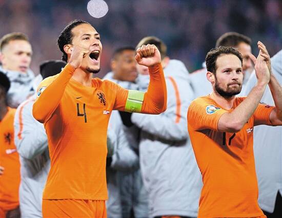 荷兰队长范迪克庆祝胜利 图/视觉中国