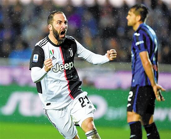 羊城晚报今晨消息 记者刘毅报道:意甲第13轮今晨上演强强对话,八连冠得主尤文图斯客场以3比1逆转上赛季第三名亚特兰大,前锋伊瓜因攻入两球并助攻一次。尤文积35分继续领跑,国际米兰以1分之差紧随其后。