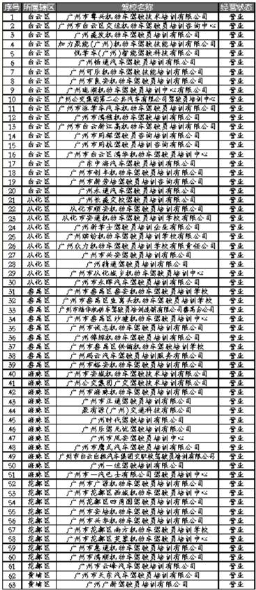 广州市取得合法驾培资质并正常经营的驾校清单