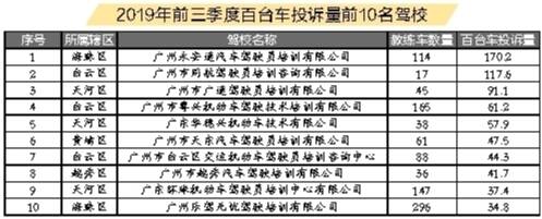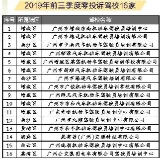 目前,广州市取得普通机动车驾驶员培训许可资质,在“广东省驾驶培训监管服务平台”通过备案并正常营业的驾校共计123家、各类教练车10827辆。2019年前三季度,全市驾培行业收到各类投诉或诉求共计2054宗。此外,前三季度广州市共有16家驾校未收到学员投诉。