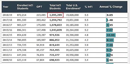根据今年公布的数据显示,美国国际学生人数连续第四年超过100万, 2018/2019学年留美人数再创新高,达到109万人。