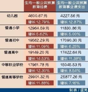 其中,财政性教育经费(主要包括一般公共预算安排的教育经费、政府性基金安排的教育经费、国有及国有控股企业办学中的企业拨款、校办产业和社会服务收入用于教育的经费等)为3189.18亿元,占全国财政性教育经费的8.62%,比上年的2879.31亿元增长10.76%,增幅高于全国增幅2.61个百分点。全省一般公共预算教育经费(包括教育事业费、基建经费和教育费附加)为2805.31亿元,比上年增长11.21%;占一般公共预算支出15737.37亿元的比例为17.83%,比上年的16.77%提高了1.06个百分点,高于全国平均占比(14.48%)3.35个百分点,占比在全国排第6位。