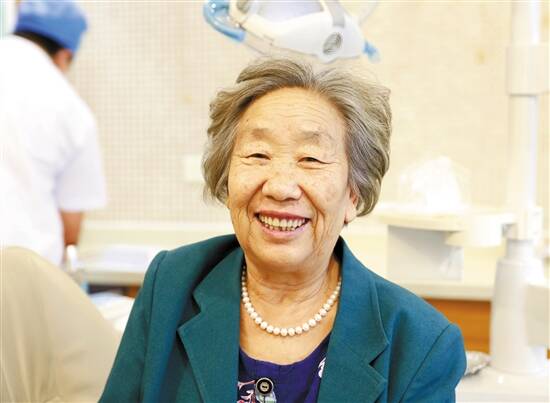 完成缺牙修复的李大妈年轻好几岁