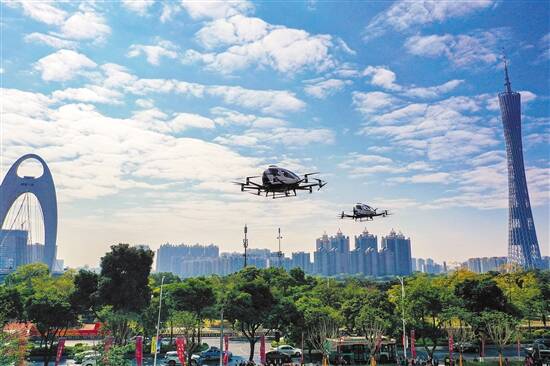 电动载人级自动驾驶飞行器在广州上演空中首秀