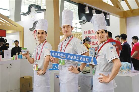 现场粤菜文化展示区里,粤港澳大湾区优质食材和饮食文化尽收眼底,“粤盐”领鲜粤菜百味,与21个地市及香港、澳门的粤菜代表同台推介展示,在展示区中独树一帜,充分展示了“粤盐”的实力。作为“粤盐”的主打产品,采用湛江非遗技艺十二道古法晒制的生态海盐备受关注,这是广东盐业发挥雷州半岛的海洋生态优势,于去年推出的首个荣获国家生态原产地产品保护认证的海盐产品。“粤盐”生态海盐作为大会比赛专用盐,区别于一般矿盐的苦涩味,突出粤菜提鲜的特点,大大提高大赛作品的出品品位。