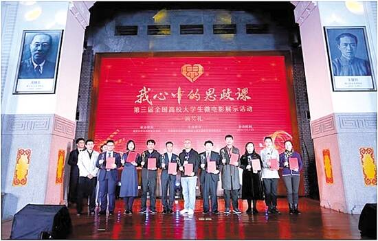 羊城晚报讯 记者周聪、通讯员廖雪良摄影报道:11月23日,第三届“我心中的思政课”全国高校大学生微电影展示活动颁奖礼在武汉大学举行。本次评出特等奖5部、一等奖10部、二等奖20部、三等奖30部、优秀奖240部、单项奖4部及组织奖3个,来自全国65所高校的181位获奖团队代表参加活动。值得一提的是,来自广东的广东女子职业技术学院荣获一等奖。据了解,本次思政课微电影大赛,来自全国65所高校的181位获奖团队代表受邀参加此次活动。广东女子职业技术学院微电影作品《旗手》在全国31个省(区、市)、新疆生产建设兵团和重点马克思主义学院遴选报送的325部微电影作品中脱颖而出,荣获一等奖,该校也是广东省高校唯一受邀参加现场颁奖典礼的单位。
