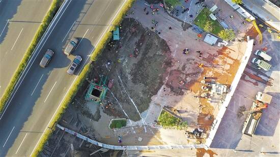 广州地铁集团建设总部总经理孙成伟介绍现场救援进展:事件发生后,根据专家组意见,马上用混凝土加固塌陷区边坡防止再次塌方,待形成安全的救援平台后全面开展救援。同时,按照救援方案,在塌陷区域安装钢护筒,形成救援通道,向下探挖搜寻被困人员。共投入应急救援人员1100多人、各类应急救援车辆192辆。