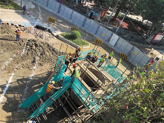 建成钢护筒救援通道,周边安装了作业平台 羊城晚报记者 梁怿韬 张豪 摄