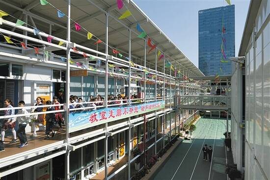 据了解,高科技预制学校为钢架结构,在厂里按模具生产,拆装方便,以螺丝、钢丝固定链接,三个月即可安装建成,90%以上的构件,可循环利用五次,使用寿命达20年。