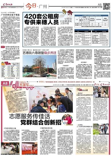 羊城晚报讯 记者罗仕、通讯员来穗宣报道:记者昨天从广州市来穗局获悉,广州市住房和城乡建设局、市来穗人员服务管理局门户网站今天将同步发布2019年度来穗务工人员公共租赁住房申请工作的信息,计划推出420套公共租赁住房,面向符合条件的来穗务工人员供应。12月10日起接受网上预申请,2020年4月10日公告摇号分配结果。据介绍,2019年度来穗务工人员公共租赁住房推出分配的有2个房源点,其中白云区283套(房源项目:恒大御府;地址:白云区御府新街2号、4号),黄埔区137套(房源项目:保利瀚林花园;地址:黄埔区明伦街1号、2号)。