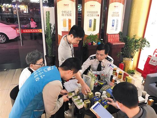 在南山区永健保健食品店(创业店),执法人员对被举报的产品中科创新牌灵芝孢子油软胶囊和复合益生菌粉固体饮料实施执法抽检,在经营场所发现产品宣传资料一批,涉嫌虚假宣传。执法人员对中科灵芝孢子油软胶囊等五种产品予以暂扣,数量共计58盒,并对南山区永健保健食品店(创业店)宣传保健食品存在治疗功效涉嫌虚假宣传立案调查。