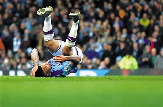 曼城球员热苏斯倒地 图/视觉中国