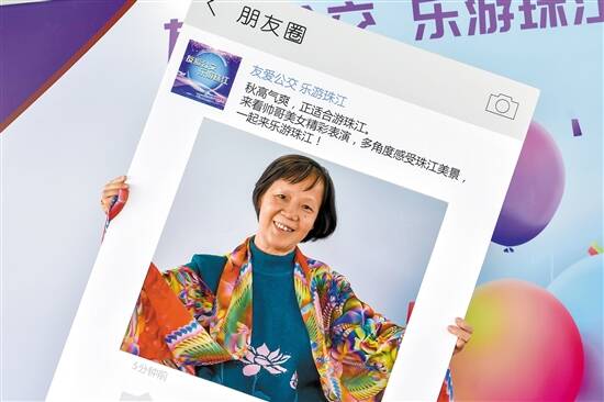市民纷纷在友爱公交·乐游珠江展板前合影留念