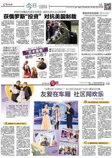 同乐会现场,公交集团的员工分享了发生在公交车厢、客轮游船上的友爱故事,让大家感受到浓浓的暖意。珠江两岸街道的街坊则拿出看家本领,海幢街的男女二重唱、人民街的电声乐队、北京街的粤剧同台展示,好不热闹。