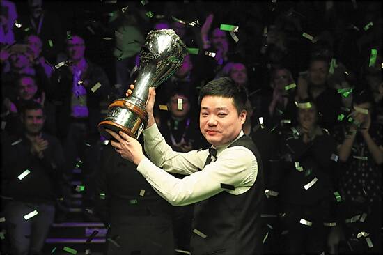 丁俊晖捧起冠军奖杯 图/视觉中国