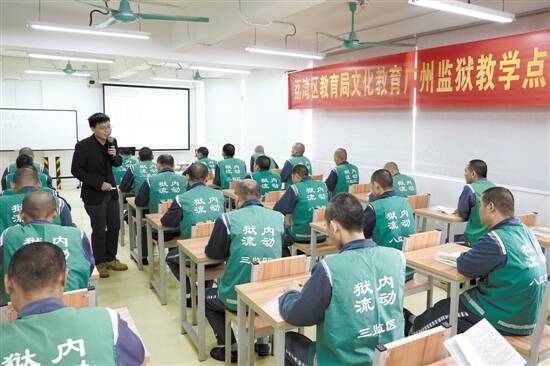 揭牌仪式结束后,来自广州市真光中学的历史教师饶鹏在广州监狱技术培训中心二楼理论授课室讲授《隋唐时期:封建社会的繁荣》,40多名学员参加了首次开班学习。据介绍,教育局安排教师为广州监狱开展扫盲、小学语文、小学数学、初中语文、初中代数、初中几何、初中历史授课,寒暑假参照广州市教育主管部门规定执行。同时,根据形势定期或不定期开展专题讲座或文化帮教活动。