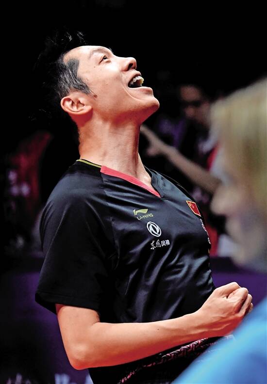 许昕庆祝获胜 新华社发
