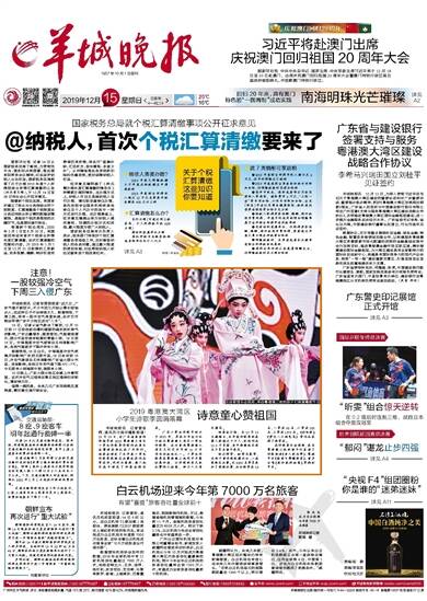 广州市区天气预报:多云,有轻雾或轻微灰霾,气温15℃到25℃,相对湿度40%到92%,吹轻微的偏东风 羊城晚报社出版/国内统一刊号/CN44—0006 邮发代号:45—6 新编第14551号/全国发行12版