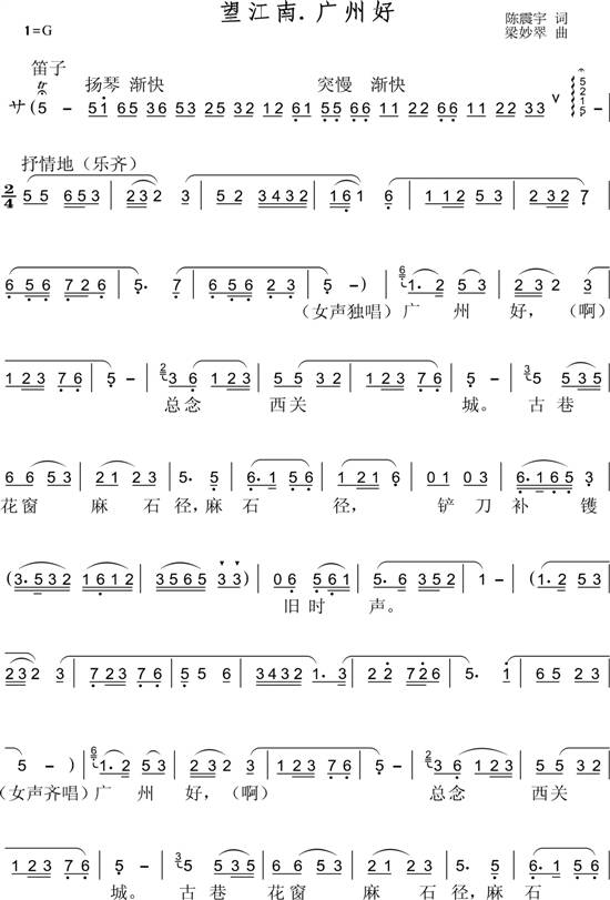 单单吟诵广州市民所作的新词《望江南·广州好》,已觉满口余香。如果将词谱成曲,又是怎样的情致?