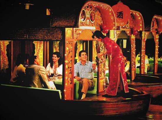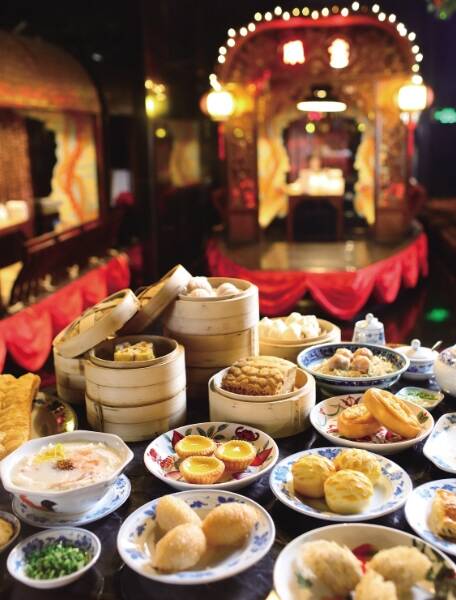 作为怀旧的粤式茶楼,荔湾亭独具西关风情。荔湾亭是广州花园酒店最具特色的粤菜餐厅,荟萃传统粤式美点,供应各种各样的驰名粤式小吃及菜肴。其装饰依据广州昔日著名的荔枝湾夜市情景而设计,荔树扶疏,藤蔓缠绕,榕树瓜棚,古朴西关风韵浓浓的怀旧气息扑面而来,十只做工精细的命名花艇如大妹、有金、顺娇、银姐等,均富地道的南方色彩。早上的荔湾亭总是特别热闹,八点多就已经人满为患,喧闹却有一种久违的熟悉。走传统路线的荔湾亭,保留了广式早茶传统的手推车式服务,在桌子与桌子之间来回穿梭,我们又找回了自己熟悉的记忆。仿佛时间倒流,我们还是那个小孩,拿着早点卡去寻找最爱的早点。晶莹剔透的虾饺是花园年度最受欢迎的点心,点心师傅对纯手工制作虾饺要求甚高,新鲜活虾,粉皮要薄,十三道褶,大小均一,馅中有笋、虾、猪肉,皮薄馅靓,鲜爽弹牙,平均每天销量超过200笼。叉烧包其貌不扬,却是点击率极高的一道粤点,松化可口,肉香诱人。口碑载道的招牌秘制脆皮鸡,皮脆肉嫩、色味俱佳;还有荔湾亭招牌艇仔粥,叉烧酥和云吞面等,都是来自荔湾亭的必点佳作,如有雅兴,坐上花艇,更能在味觉和视觉上体验地道的西关风味。