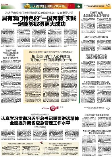 习近平对何厚铧表示,你作为澳门特别行政区第一、二任行政长官,为特别行政区建设发展打下了很好的基础,“系好了第一粒扣子”。你担任全国政协副主席后,继续为澳门“一国两制”事业和国家现代化建设事业尽心竭力。中央对你的工作是充分肯定的。希望你全力支持新一任行政长官和新一届特别行政区政府开好局、起好步,继续重视青少年工作,引导他们增强国家意识、培育家国情怀,使爱国爱澳核心价值在澳门薪火相传。