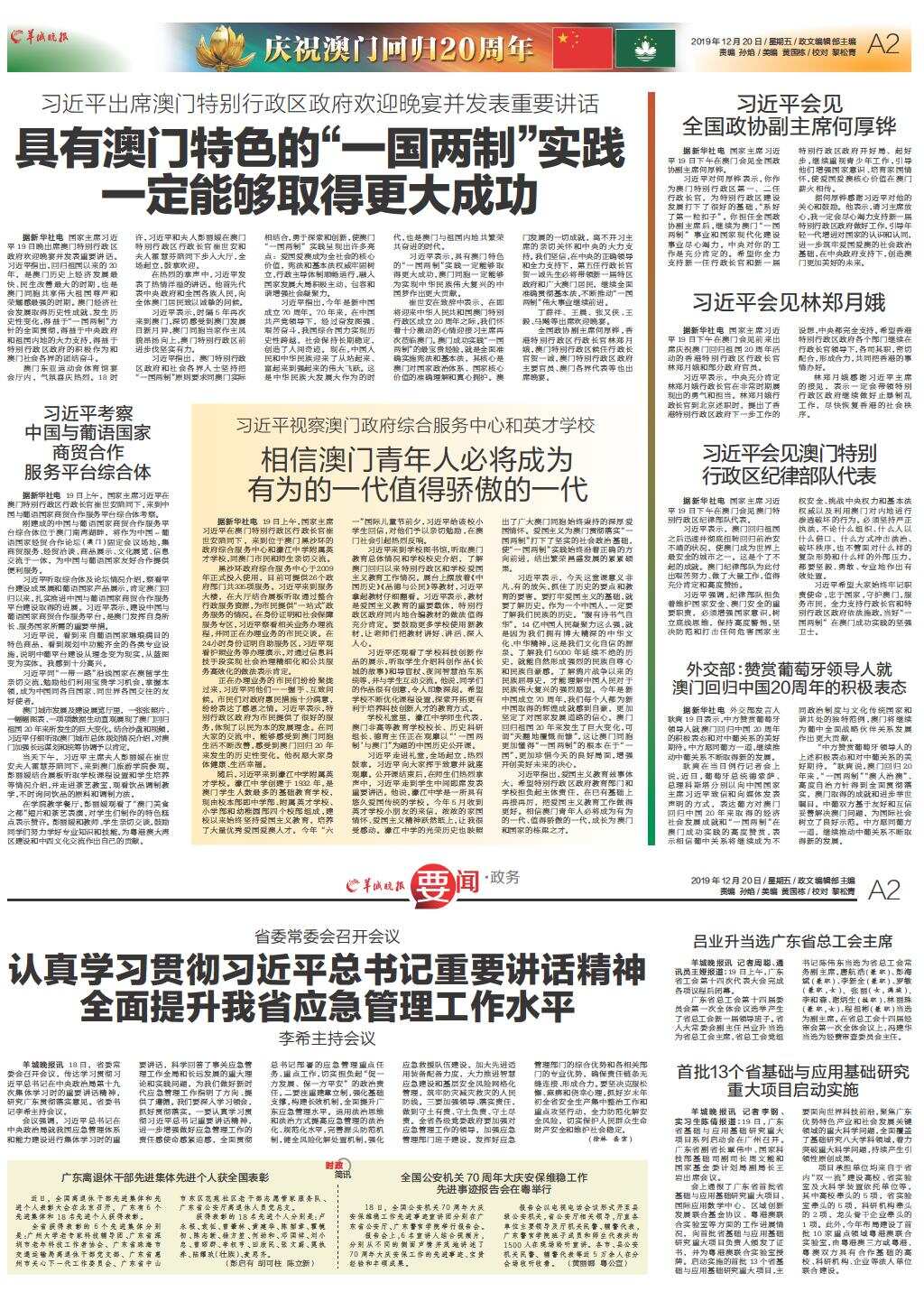 第A02版:庆祝澳门回归20周年;要闻·政务