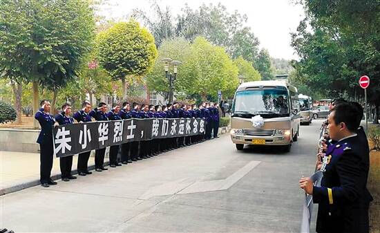 烈士家属、亲属代表,韶关市和赣州市相关负责人,韶关军分区及相关部队官兵代表,当地其他党、政、军、民代表千余人,迎送朱小华烈士。随后,烈士骨灰被送往江西省赣州市南康区大坪乡朱小华的老家,并安葬在赣州市南康烈士陵园。