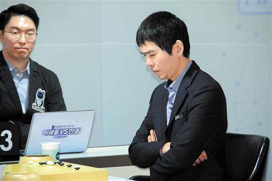 体坛人物羊城晚报讯 记者葛万里报道:韩国围棋世界冠军李世石九段(下图,新华社发)与韩国人工智能围棋“韩豆”进行的三番棋退役告别赛,昨日在李世石的家乡韩国新安郡收枰。第三局比赛,李世石再次受让二子(黑贴3又3/4子),最终中盘负于“韩豆”,以总比分1比2落败。至此,曾为世界围棋“第一人”的李世石,其24年零7个月的职业棋手生涯画上句号。