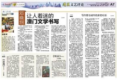 “粤港澳大湾区的建设将是澳门文学繁荣的一个绝佳契机。”《澳门日报》副总编辑廖子馨说,以文学为纽带推动大湾区文化互通,才能有力支撑建设粤港澳三地、乃至海内外华人华侨共同的精神家园。她回忆道,上世纪80年代,大批内地作家在中国作协的组织下前往澳门交流,这对澳门报纸影响深远,如《澳门日报》开设了纯文学版,选刊各地作家优质文学作品,从而开启了“澳门文学起飞的时代”。